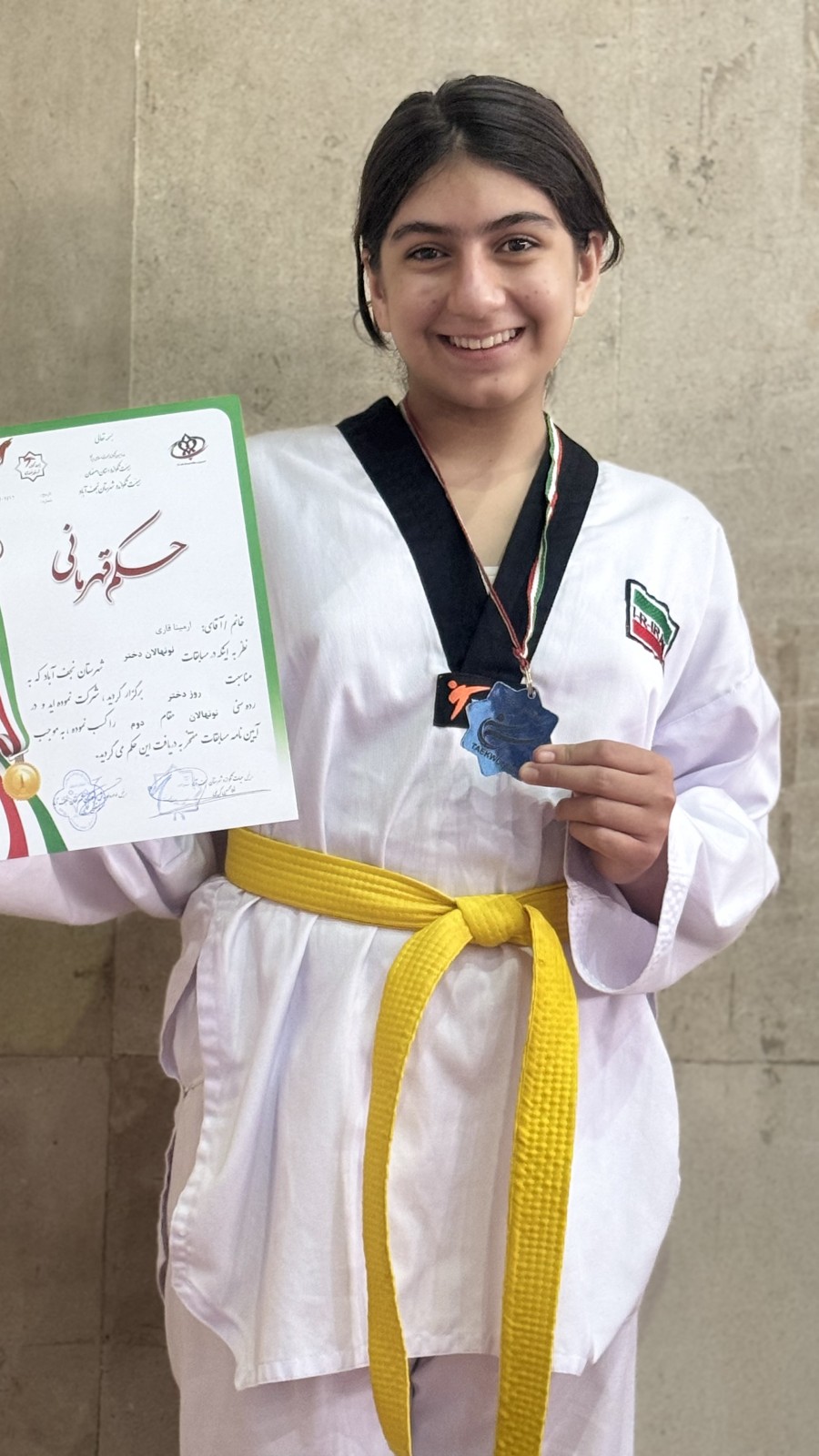 ۸سال پیاپی مدال طلای استان و عناوین مختلف کشوری در دسته کیوروگی دارم و ۵سال لیگ برتر تکواندو بودم و عاشق مبارزم💜